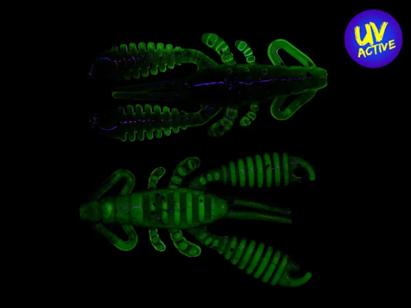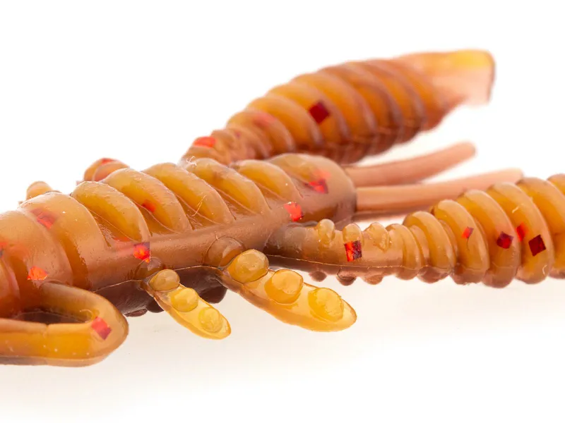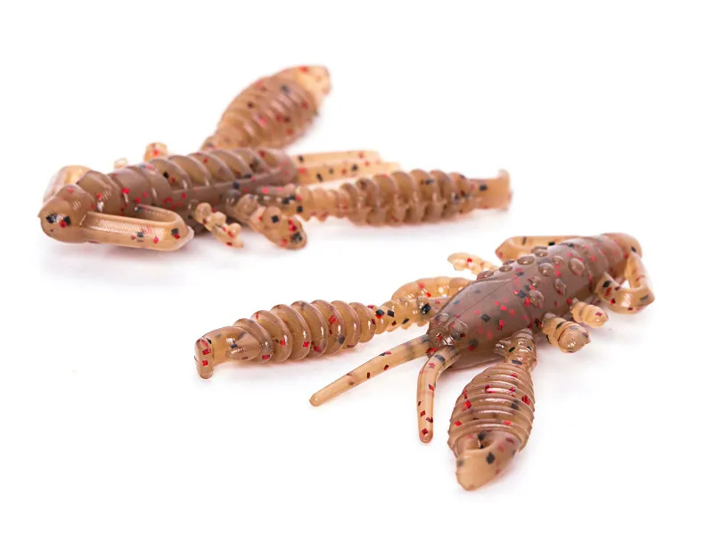 Der 1.5″ Ring Craw Micro imitiert recht detailliert einen kleinen Krebs und lässt sich sehr gut an UL-Jigs, am Texas- oder Carolina Rig fischen. Er eignet sich natürlich auch als Jig-Trailer für den Mono Spin Jig. Die relativ schweren, gerippten Scheren des Ring Craw Micro stehen in Einholpausen nach oben, um die Abwehrhaltung eines Krebses nachzuahmen. Auf der Unterseite ist der Ring Craw quer gerippt. Ein gefundenes Fressen für alle Krebsliebhaber unter Wasser!