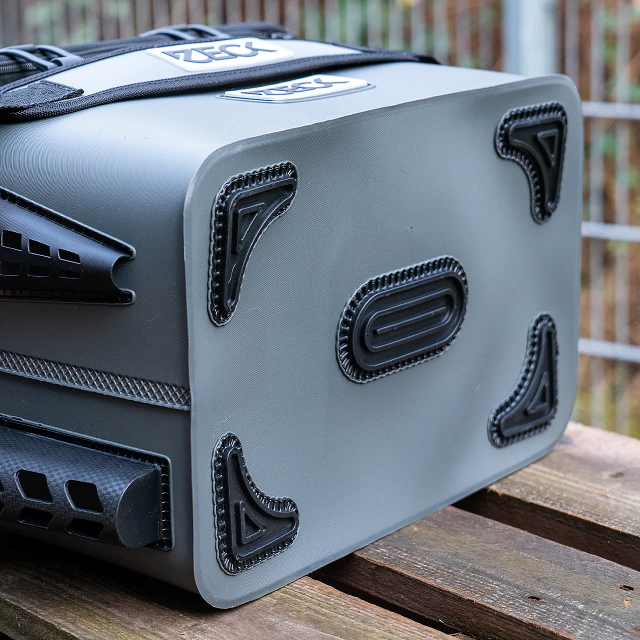 Der Tackle Container Pro ist eine robuste Tasche, die du für alle möglichen Utensilien nutzen kannst, die sicher transportiert werden müssen; beispielsweise Zubehörtaschen oder auch Tackle Boxen bis zur Größe L.
