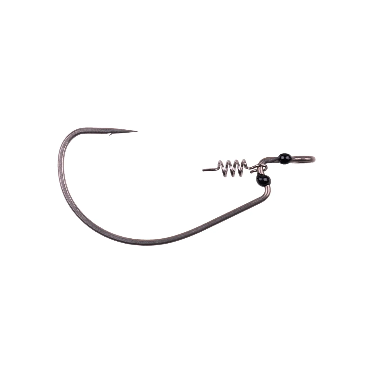 Der Wide Gap Screw Hook ist mit einer abnehmbaren Köderspirale als Baitkeeper ausgestattet. Durch den mittigen Dorn klappt das Eindrehen in den vorderen Gummibereich problemlos. Der Köder bleibt unversehrt und sitzt bombenfest an der perfekten Position auf dem Haken. Durch den Clip an der vorderen Öse kannst du die Spirale aber auch ganz einfach vom Haken entfernen. Je nach Bedarf hast du also die Möglichkeit mit oder ohne Köderspirale zu fischen. Der untere «Resin-Knubbel» am Knick des Offset-Hakens dient beim direkten Aufziehen ebenfalls als eine Art Baitholder für den Kopfbereich des Gummiköders. Die geschlitzten Spiralen kannst du bei uns nachkaufen, falls du mal welche verlieren solltest.